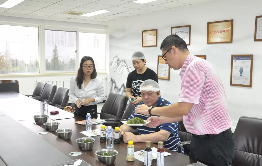 在浩和接待人員的引導下,中大餐飲一行人重點參觀了浩和央廚產業(yè)園的水產線及央廚合成線,并對車間的格局設計、HACCP執(zhí)行在裝修上的要點、機器設備、路線規(guī)劃,人工操作等問題展開了深入探討和交流。與此同時,鑒于浩和食品在水產養(yǎng)殖和出口、尤其是海藻類原料方面所具備的優(yōu)勢,原料類產品也是中大餐飲參觀的重點項目之一。